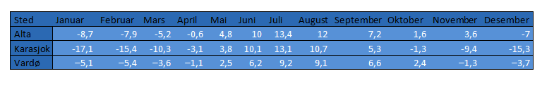 I Karasjok er differansen mellom varmen og kulderekorden 83,8 °C.